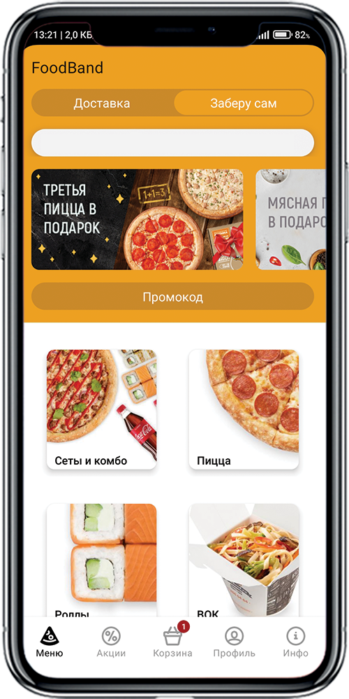 Покажи репост сотруднику FoodBand и получи промокод на пиццу за 1 ₽;