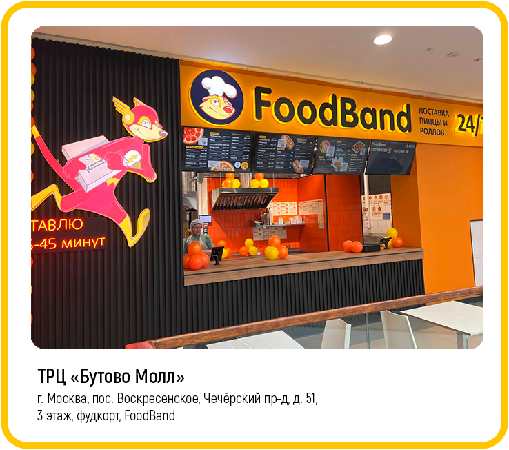 vk.com/foodband_butovo и на ТРЦ «Бутово Молл» @trcbutovo.mall